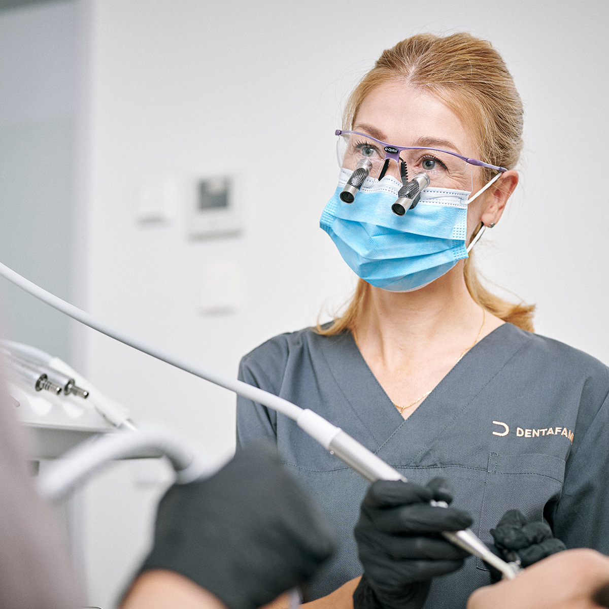 - Entfernung von Belägen und Zahnstein in der Tiefe
